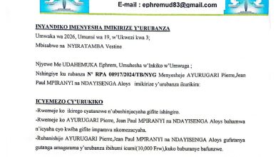 Ahabanza/Cyamunara/Cyamunara umutungo wimukanwa ugizwe na baro z’imyenda yo kwambara 35 ziherereye mu Mujyi wa Kigali Cyamunara Cyamunara umutungo wimukanwa ugizwe na baro z’imyenda yo kwambara 35 ziherereye mu Mujyi wa Kigali admin Send an email December 26, 20211 662 Hashize umwanya uri munsi y’umunota Facebook Twitter Messenger Messenger WhatsApp Telegram Sangiza abandi kuri Email Imprima itangazo_viateur_imyenda_acc.pdf admin Send an email December 26, 20211 662 Hashize umwanya uri munsi y’umunota Facebook Twitter Messenger Messenger WhatsApp Telegram Sangiza abandi kuri Email Imprima Sangiza abandi Facebook Twitter WhatsApp Telegram Sangiza abandi kuri Email Imprima